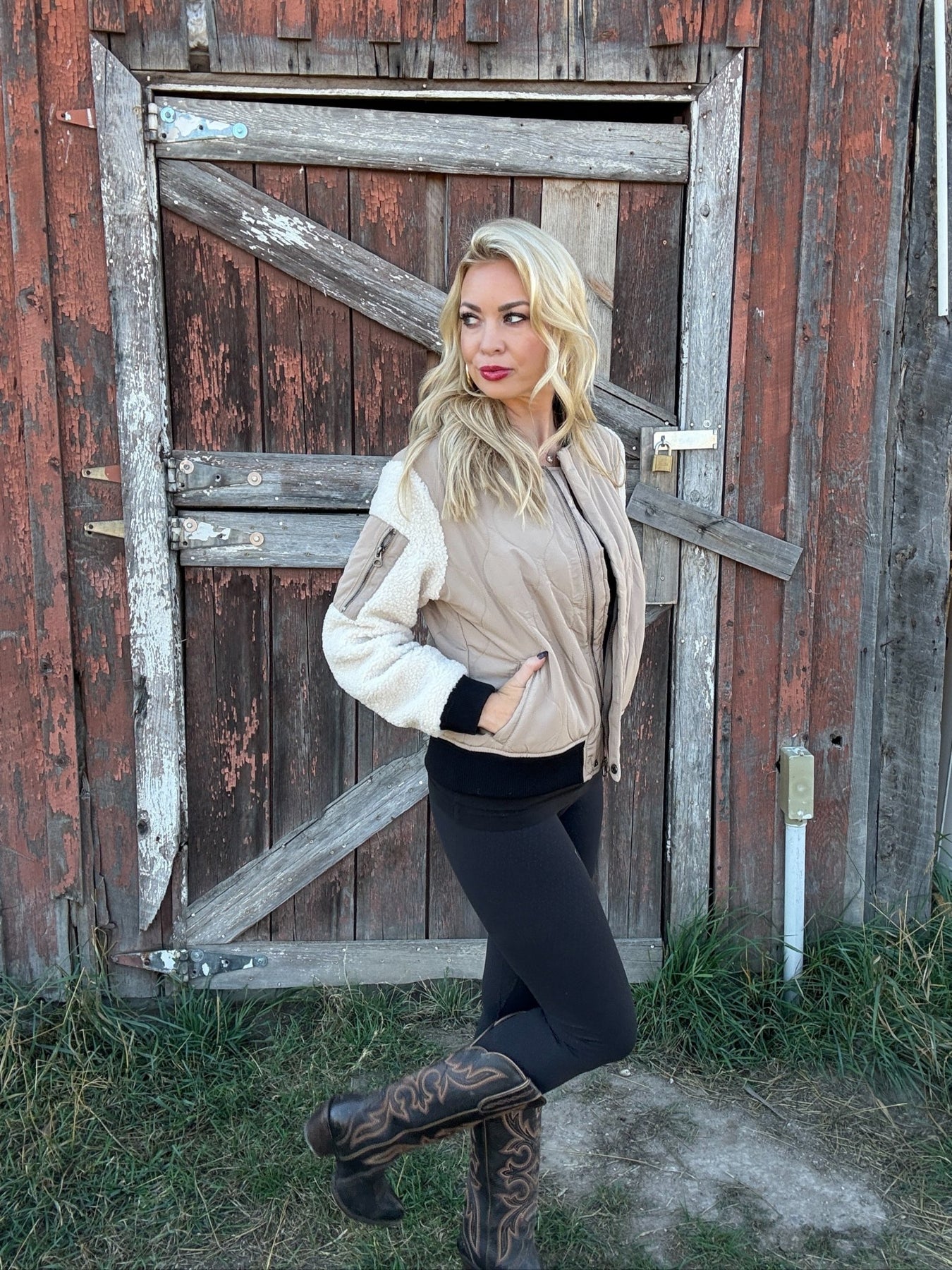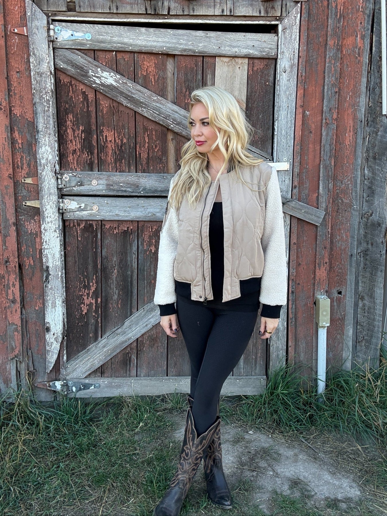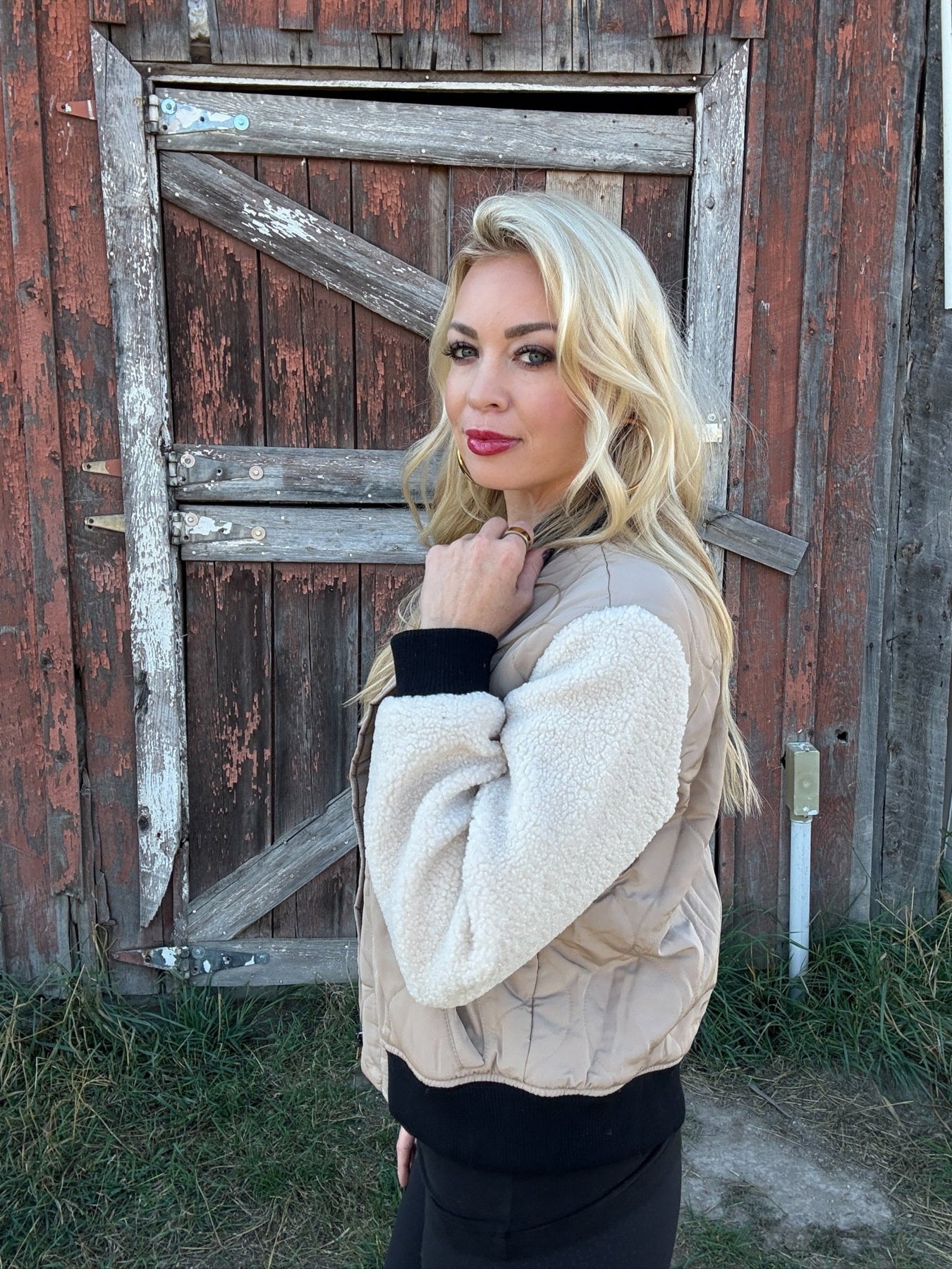 The Goldie Bomber blends cozy sherpa with sleek quilted nylon. Your new go to for layering in style this season.