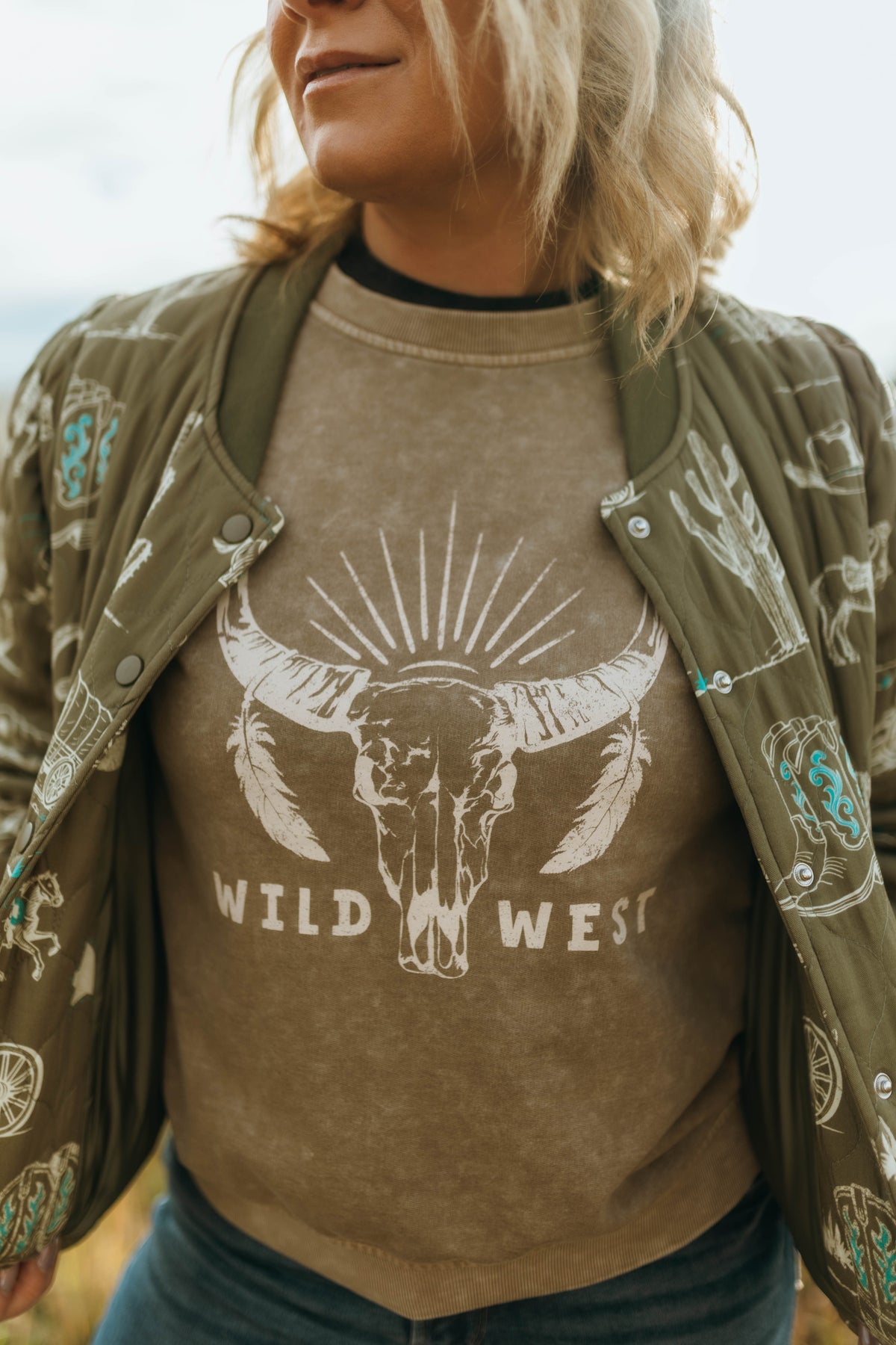 A vintage inspired Wild West graphic top with an easy relaxed fit. Your new everyday favorite.