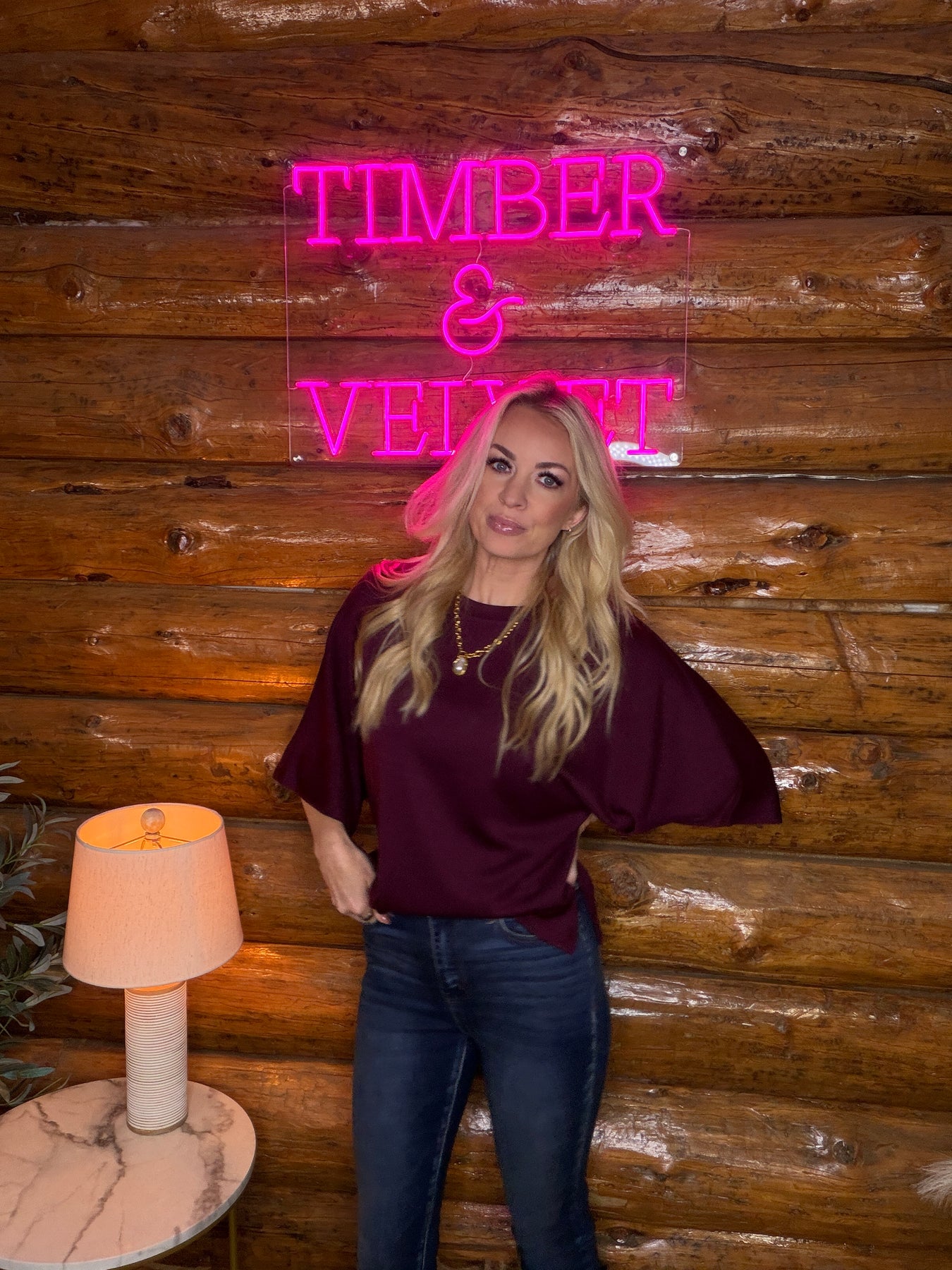 The Sofia blouse blends simplicity and sophistication in the best way. Designed with a wide, relaxed silhouette and elbow length sleeves, this lightweight knit skims (never clings) for a flattering, effortless look. Soft stretch keeps it comfy all day and layers smoothly under jackets or cardis.