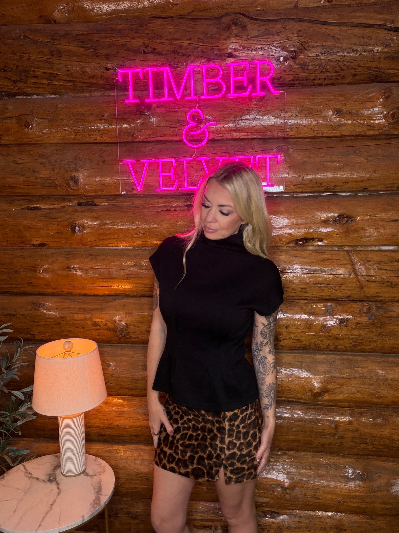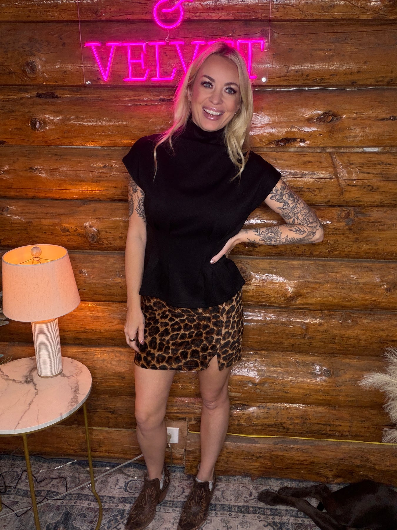 The lightweight stretch fabric offers comfort and movement, making it perfect for layering under jackets or wearing solo for a sleek statement look.