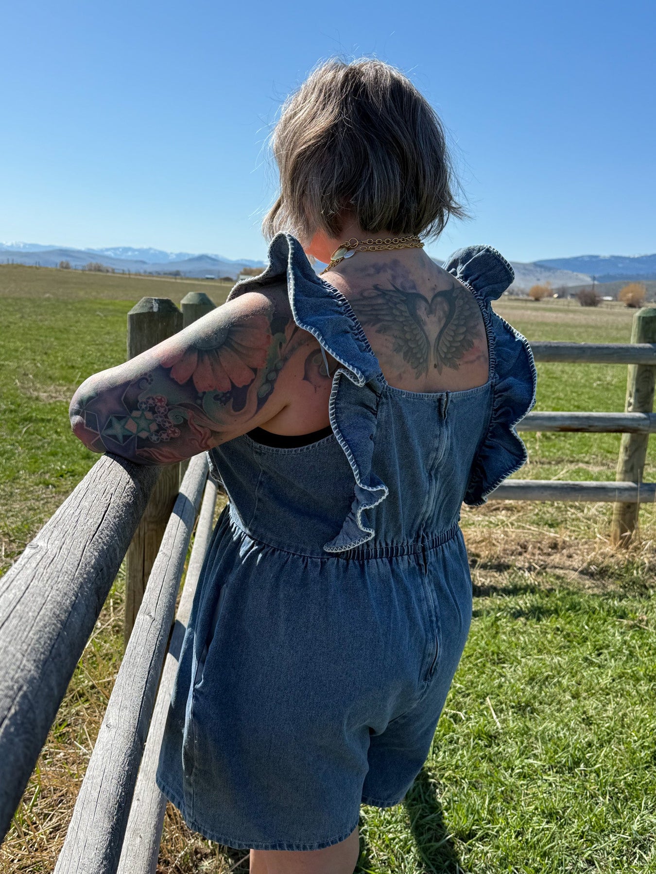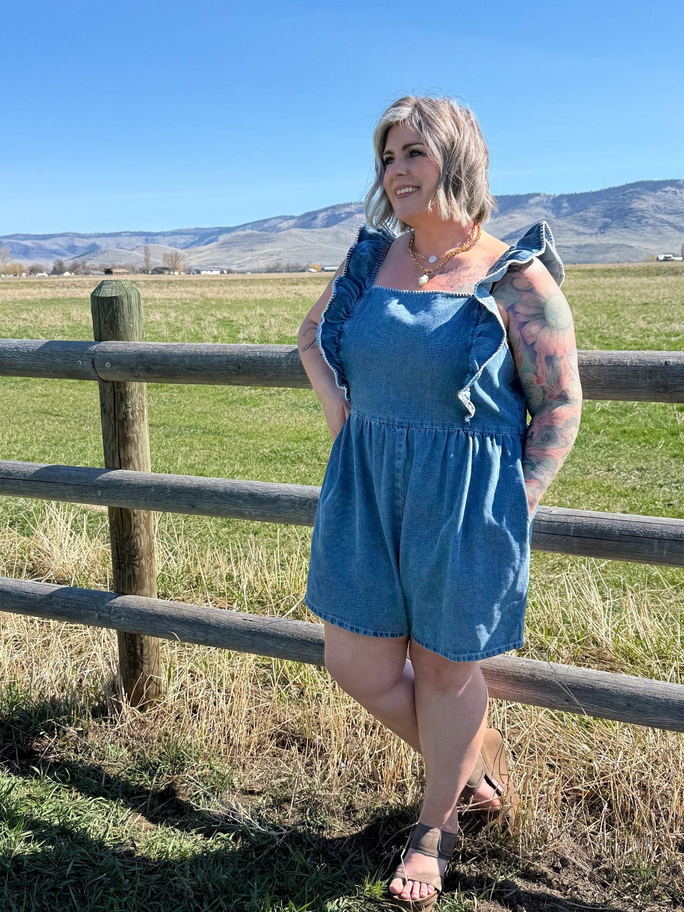 Made from lightweight denim with a comfortable stretch, Hailey cinches gently at the waist for a flattering silhouette, while the back zipper keeps things secure. Whether you’re headed to a summer concert, brunch with your girls, or just soaking up some sunshine, this romper brings effortless charm and curve-loving confidence.