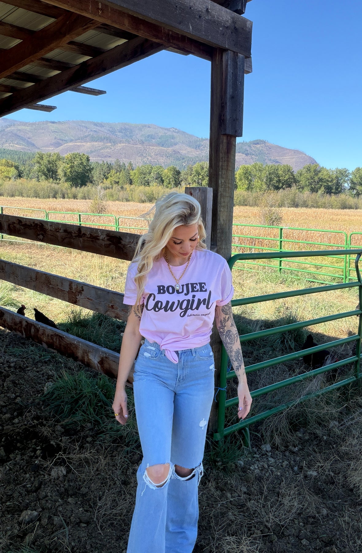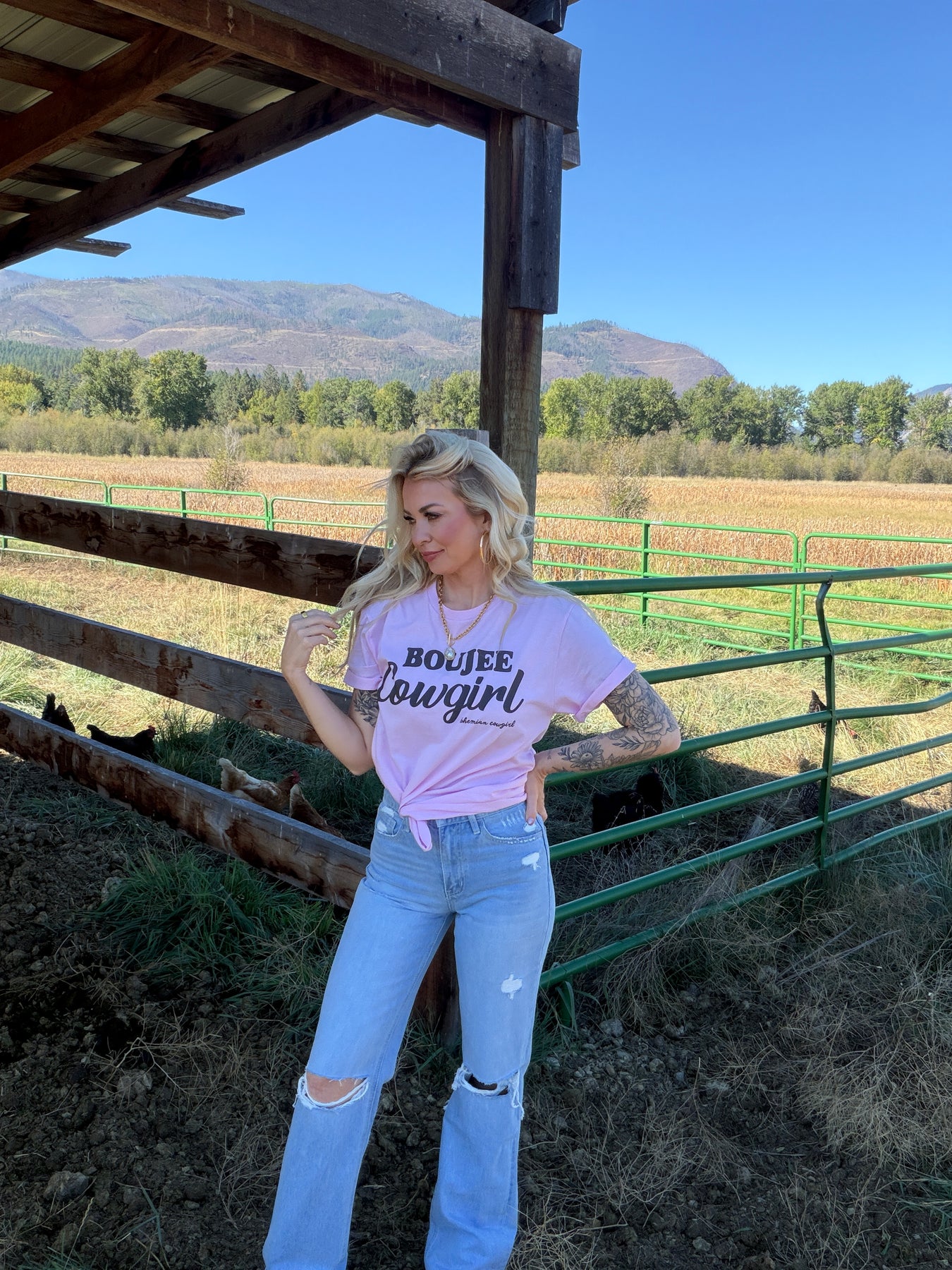 For the cowgirl who loves her boots and a little bling 💖 The Boujee Cowgirl Tee brings sass, softness, and that western chic charm you’ll love.
