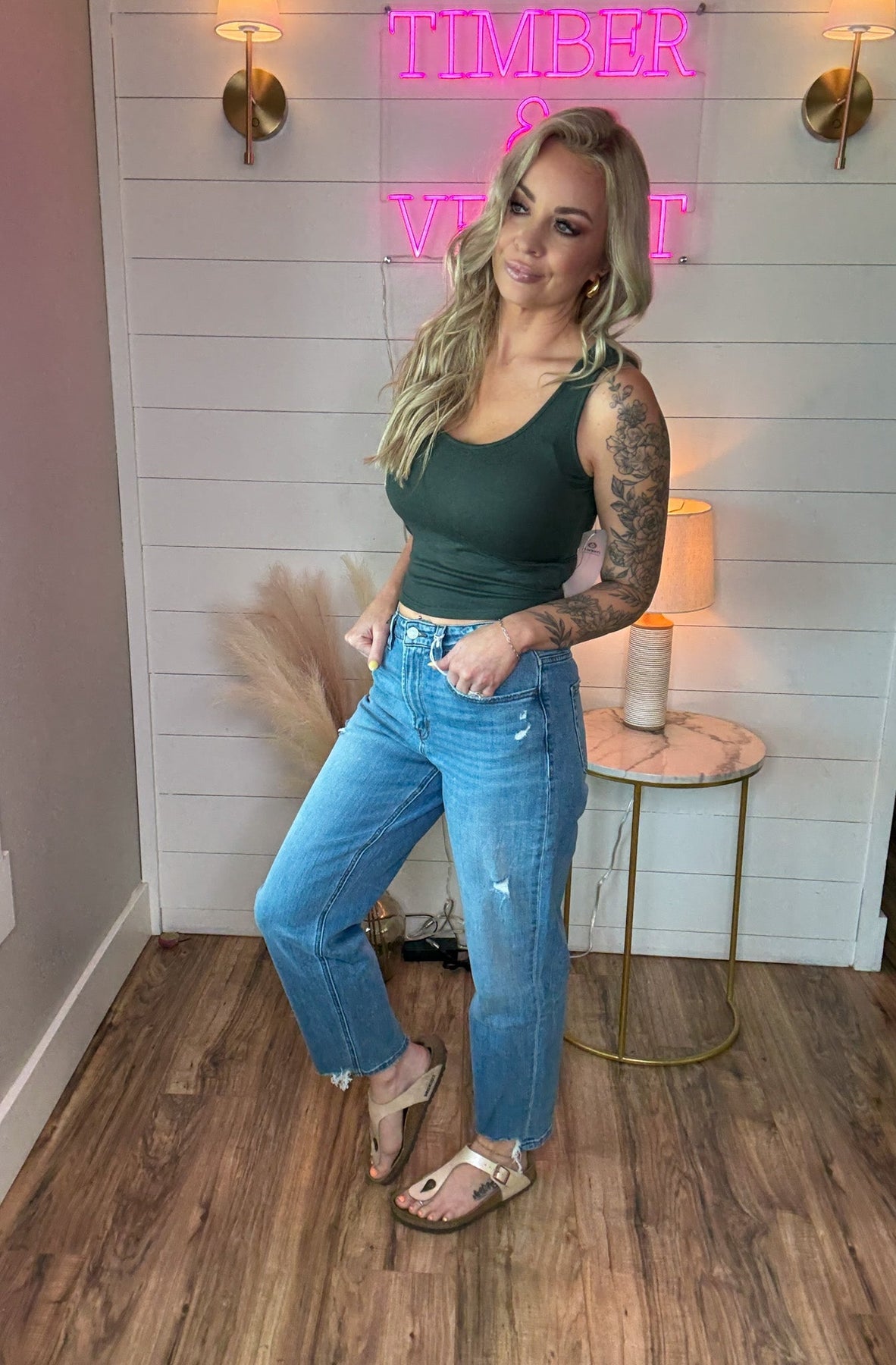The high waist gives a cinched-in look while the ankle length barrel fit offers a relaxed feel that still shows off your shape. Whether you're pairing them with a tucked tee and slides or a cropped tank and boots, The Willa Jean brings a whole lot of style with very little effort.